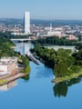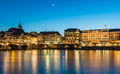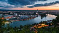 Blick vom Hornfelsen (oberhalb Grenzach) auf Basel zu unterschiedlichen Tageszeiten