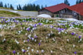 Blühende Krokusse am Rämisgummen oberhalb von Eggiwil